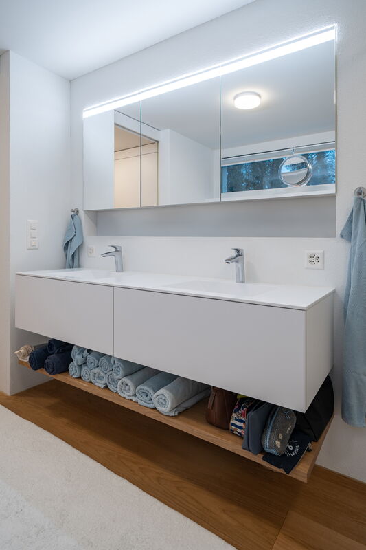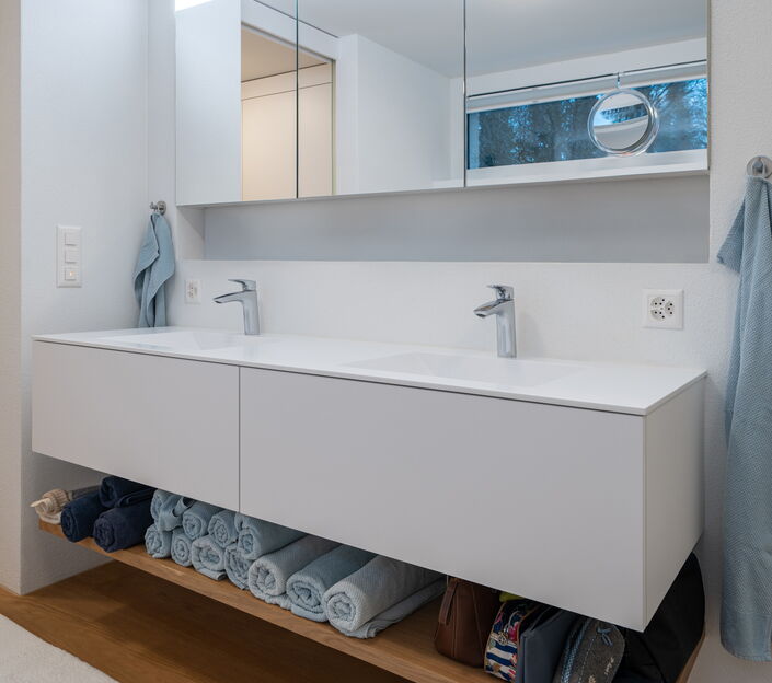 Ihr Badezimmer ist der Raum, in dem Sie entspannen und den Tag beginnen – warum sollte es nicht genauso einzigartig und individuell sein wie Sie? Mit unseren massgefertigten Badmöbeln schaffen wir eine harmonische Atmosphäre, die Funktionalität und Design perfekt vereint. Vom eleganten Waschtisch über praktische Stauraumlösungen bis hin zu stilvollen Regalen – jedes Möbelstück wird nach Ihren Wünschen und Bedürfnissen geplant und gefertigt. Vertrauen Sie auf unsere Schreinerei, um Ihr Badezimmer in eine Wohlfühloase zu verwandeln, die genauso einzigartig ist wie Sie.